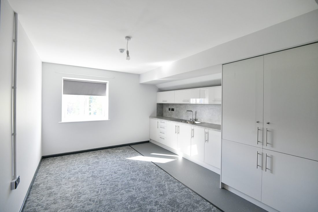 The work has included the refurbishment of upper-floor bedrooms, which were previously twin rooms and have now been converted into spacious single bedrooms, each with its own ensuite shower and bath. The whole unit has been reconfigured and redecorated, featuring new kitchen areas designed with accessibility in mind to support the independence and confidence of our students.